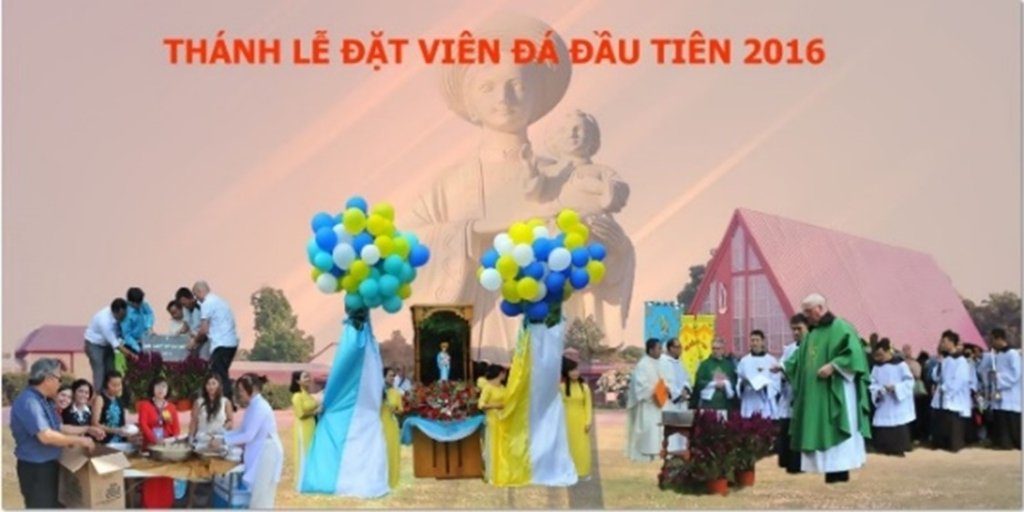 Thánh Lễ Đặt Viên Đá Đầu Tiên được cử hành một cách long trọng với sự góp mặt của hơn 600 anh chị từ khắp nơi vào đúng dịp Giáo Hội Mở Năm Thánh Lòng Chúa Thương Xót và kỷ niệm 20 năm ngày thành lập chi nhánh dòng Cát Minh tại Việt Nam. Không biết có phải một sự tình cờ ngẫu nhiên hay sự sắp đặt của Chúa Quan Phòng ngày 08.05.2017 vừa là ngày động thổ và cũng là ngày tượng Đức Mẹ và các tượng khác, do cơ sở điêu khắc Phan Chi Lăng bắt đầu rời cảng Đà Nẵng. Sau hơn một tháng lênh đênh trên biển ngày 11.06.2017 vào đúng ngày lễ Chúa Ba Ngôi tượng Đức Mẹ cập bến thành phố New York.
