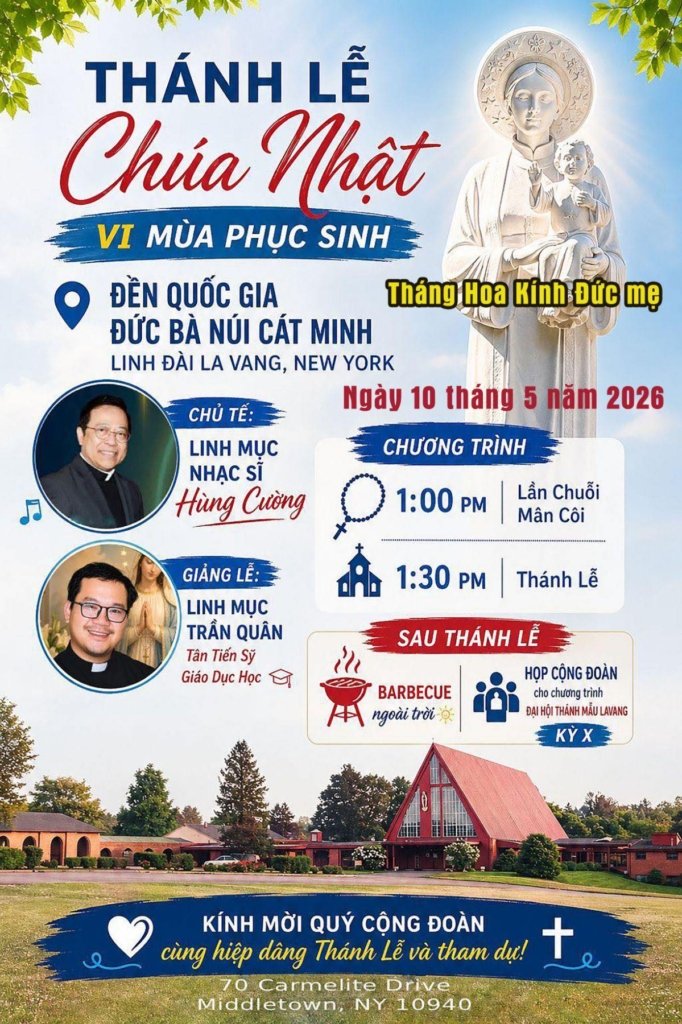 Chương trình:�• 1:00 PM – Lần Chuỗi Mân Côi�• 1:30 PM – Thánh Lễ